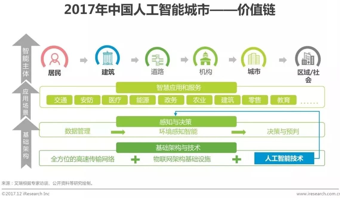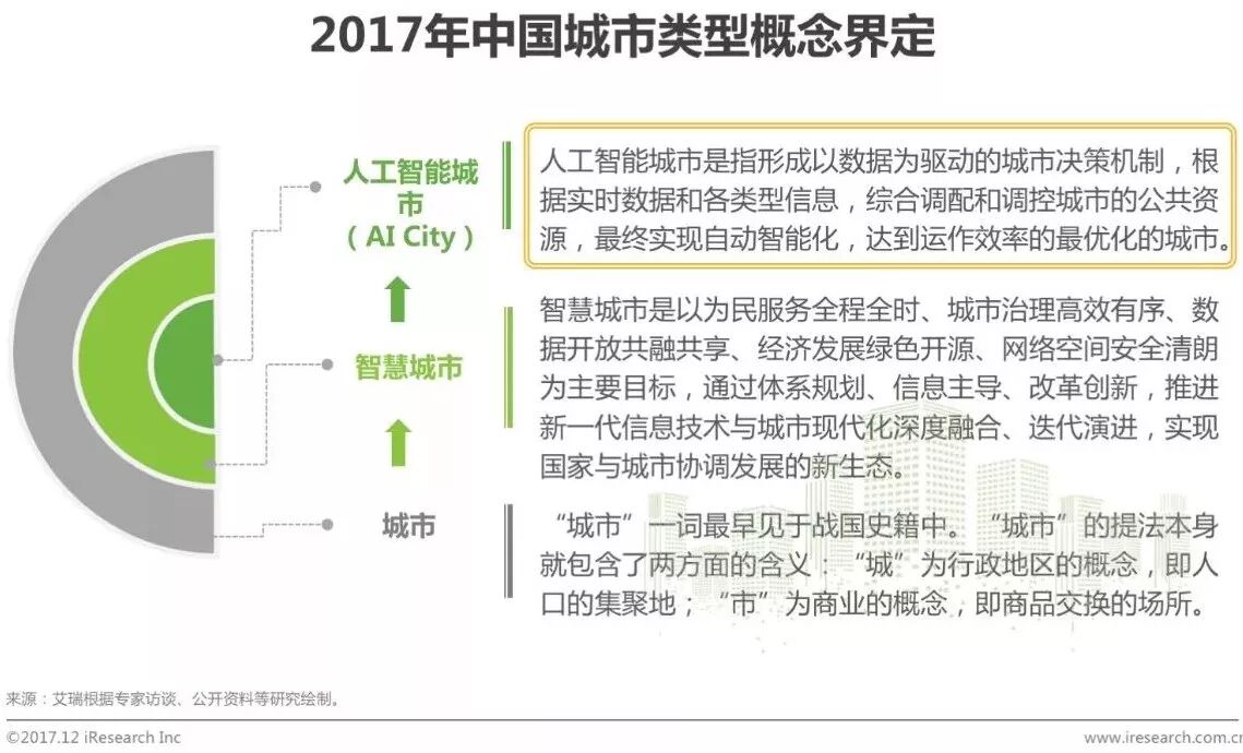 在第四次信息革命的推動下,城市-智慧城市-人工智能城市的不斷迭代升級,人工智能技術在城市建設當中越來越重要;從信息化-聯網+感知-自主智能化,越來越重視技術革新帶來的升級體驗;艾瑞認為:未來,城市管理當中人類參與管理與決策將越來越少,最終達到城市自主智能化管理的效果,從而實現高效、安全、節能、可持續發展的城市發展目標。