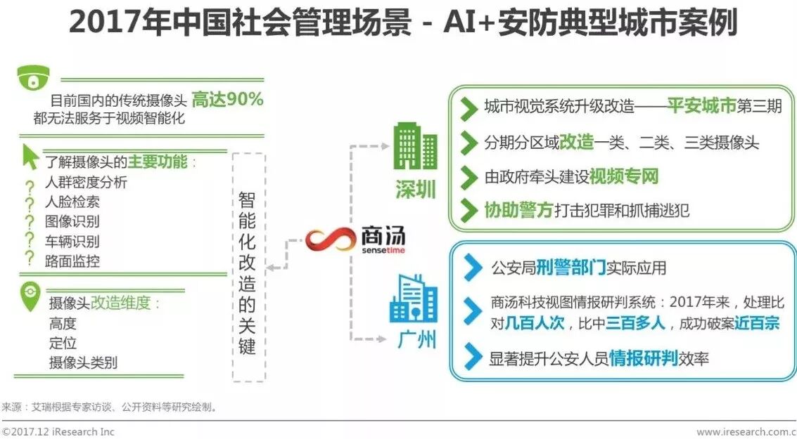 國內的攝像頭目前難以實現智能化,因此,改造關鍵是了解攝像頭的主要功能,才能有針對性調整攝像頭的高度、位置和類別。商湯科技協助深圳市的平安城市改造,以升級改造視頻專網的方式協助警方打擊犯罪和抓捕逃犯,為日后的城市整體安防發展打下良好的基礎;而廣州市則已經通過商湯科技視圖情報研判系統,在短短半年內破獲近百宗案件,破案數量顯著提升,破案時間有效縮短,為公安機構日后的執法提供強大的支援。
