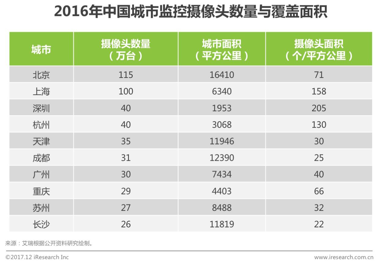 2017年國家官方數據公布“中國天網”攝像頭達2000萬個,但對于將近20萬平方公里的城區面積來說,攝像頭的覆蓋面與數量是鳳毛麟角;從攝像頭數量/千人的維度來看,中國城市攝像頭密度平均水平僅達英美的20%-30%,而完善的監控系統是保障城市治安的有力手段,因此,監控攝像頭建設工程任重道遠;未來,尤其是二線及以下城市的監控攝像頭布防發展潛力巨大。